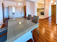 S880. Zum Verkauf Wohnung mit 3 Schlafzimmern 91m2 im Gebäude des Hotels Hermes im Zentrum von Budva. Die Wohnung befindet sich im 3. Stock des Gebäudes (im fünften Stock) hat es 3 Schlafzimmer und 3 Bäder: ein - mit einer Dusche, die zweite mit einer Badewanne, die dritte - eine Gästetoilette, in der es eine Waschmaschine gibt. Die Wohnung ist warm und hell, sehr sonnig. Die Zimmer verfügen über Laminatböden. Vom Wohnzimmer und einem der Schlafzimmer gibt es einen Ausgang zu einer großen Terrasse. Der Preis beinhaltet einen Garagenplatz.