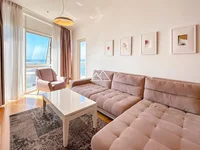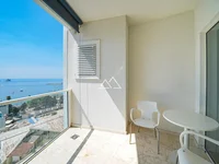 Zwei-Zimmer-Wohnung im elften Stock des renommierten "Tre Canne"-Komplexes, befindet sich auf der ersten Linie der Küste von Budva. Diese voll möblierte Wohnung ist ein Umzug bereit und bietet ein außergewöhnliches Wohnerlebnis. Der Innenraum umfasst zwei Schlafzimmer, ein offenes Wohnzimmer mit einem Essbereich und eine separate Küche. Die Fenster bieten einen schönen Blick auf das Meer und die Stadt.