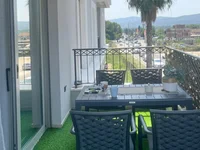 - Flur, Wohnzimmer mit Essbereich und Küche, zwei Schlafzimmer, Badezimmer mit Dusche und WC, zwei Terrassen mit Blick auf die Stadt, Garage, Abstellraum in der Garage