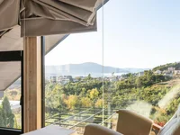 - vordere Glaswand mit atemberaubendem Blick auf die Bucht;