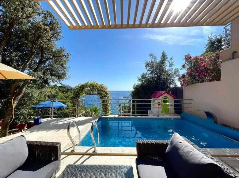 Zum Verkauf eine moderne Villa auf der ersten Linie mit privatem Zugang zum Meer, in der exklusiven Gegend von Bar, Utjeha. Dieses einzigartige Anwesen wird von einem renommierten europäischen Architekten entworfen und kombiniert Luxus mit Funktionalität durch zeitgenössische Architektur.