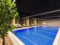 Das Haus verfügt über einen Innenpool, Spa, Tiefgarage, Abstellraum