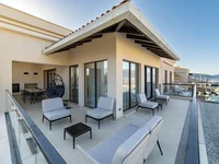 Das Hauptschlafzimmer verfügt über eine Sauna, während die größte Terrasse, vom Wohnzimmer und Küchenbereich aus zugänglich, einen Kamin im Freien hat. Ein zusätzliches Feature ist der direkte Zugang zur Wohnung über den Aufzug.