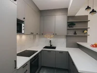 Wohnung besteht: Küche mit Essbereich, Wohnzimmer, Schlafzimmer, Bad und Terrasse. Von Terrasse Blick auf die Stadt und kleinen Meerblick.