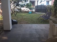Privater Innenhof mit Terrasse, Garten, Parkplatz.