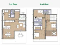 D – dreistöckig, 220 m2, Grundstück 1000–1200 m2, 4 Schlafzimmer, 3 Bäder, 2 Terrassen, Parkplatz/Garage.