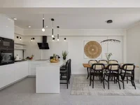 Das Apartment verfügt über ein geräumiges Wohnzimmer, ein modernes Esszimmer, eine voll ausgestattete Küche, zwei Schlafzimmer und zwei Badezimmer.