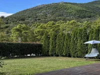 Vor dem Haus befindet sich eine gemütliche Terrasse mit Sommermöbeln, Schatten und Panoramablick auf das Meer. Hinter dem Haus befindet sich ein Mini-Garten mit einem computergestützten Pflegesystem.