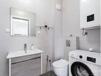 Das Schlafzimmer ist in ruhigen Farben gestaltet, die zu einer gemütlichen Atmosphäre für Entspannung beiträgt. Das Badezimmer ist mit hochwertigem Sanitär, sowie einer Waschmaschine ausgestattet. Auf dem Territorium des Hauses gibt es einen Parkplatz, einen Empfangsbereich und der Komplex selbst hat eine entwickelte Infrastruktur, die das Leben so bequem wie möglich macht.