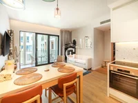 Ausstattung: Neue Wohnanlage Premium Klasse. Auf dem Gebiet der Wohnanlage befindet sich ein Erholungsgebiet: ein Außenpool und ein Gebiet mit Sonnenliegen und Sonnenschirmen. Im unteren Stock sind Premium-Markengeschäfte. Das Apartment verfügt über ein komfortables Layout. Blick auf das Meer. Exquisites Interieur mit organisch gebauten teuren Möbeln und Geräten. Hochwertige Reparatur aus teuren Materialien. Natürliche Böden. Split-System, Kessel. Fliesen und Sanitär von bekannten Weltherstellern. Schwimmbad in der Verbindung.