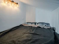 Die Wohnung besteht aus einem kleinen Eingangsbereich, einem schönen Bad mit einem Fenster, einem Schlafzimmer mit einem Balkon, einem Wohnzimmer + Küche mit einem weiteren Balkon und einem Zwischenschlaf (geräumig 2 m Bett).