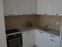 Gemütliche Wohnung in Budva mit 1 Schlafzimmer, eine Fläche von 45 m2 (mit Loggia) in einem neuen Wohnkomplex im Jahr 2015. Die Wohnung befindet sich im 4. Stock eines 8-stöckigen Hauses, von wo aus Sie die Berge und teilweise auf dem Meer sehen können.