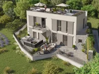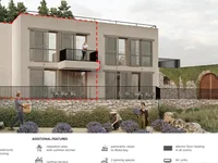 Ein separater oder gemeinsam genutzter Pool kann als Option im Projekt betrachtet werden. Das Haus ist so ausgerichtet, dass es den ganzen Tag im Sonnenlicht ist, das garantiert Ihnen trockene Wände in Ihrer Abwesenheit und natürliche Klimakontrolle ohne Problem Montenegrin Pilze, die auf nassen Oberflächen blühen. Der Komplex ist von einem Feld der Blüte Lavendel umgeben (lesen Sie über seine Vorteile und die Wirkung der Verjüngung des Körpers).