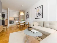 Ausstattung: Die Wohnung ist voll ausgestattet mit benutzerdefinierten Möbeln und allen notwendigen Haushaltsgeräten, einschließlich einer Spülmaschine.