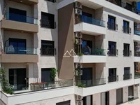 Moderne Zwei-Zimmer-Wohnung im 5. Stock einer renommierten Wohnanlage in der Gegend von Dubovica, Budva. Der Komplex befindet sich in der Nähe des Stadtzentrums und der beliebten Strände von Slovenska, Mogren, Becicici und dem Rosino Bezirk.