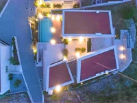 This exceptional Mediterranean villa is situated in a Prčanj, with a beautiful view of Boka Bay and mountains. Approached via a private, securely-gated road, Villa Vela is a spacious 4 bedroom contemporary home with a luxuriously specified interior, infinity pool, and double garage.The villa design is sleek, with clean lines and open, spacious interiors. Mediterranean limestone walls and characteristic sloping terracotta roof tiles float above floor-to-ceiling glass windows to maximize natural light and unobstructed, dramatic views across the Bay towards Kotor Old Town and the mountains beyond.On the ground floor, there is a large double garage, gym, toilet, laundry/utility, storage, and technical rooms (Central Control and AirCon, CCTV, Video Intercom, Fire & Security, WIFI).There is a glass-enclosed entrance reception at the center of the first floor. To the right, there are a high-ceiling living space, wood-burning stove, and kitchen areas with panoramic views of the bay and mountains, and quest toilet.  To the left, large master bedroom and bath ensuite opening to decking and pool.On the second floor, there are large double and two standard bedrooms, all with ensuite, outside terrace, and access to walled patio areas and mountainous wild gardens.Premium kitchen (Nobilia/Bosch) and bathroom fittings (V&B, Catalano, HansG), ceramics, and flooring (Florim, Porcelanosa, and natural stone) are used throughout.  Living areas and bathrooms with underfloor heating recessed AirCon and ventilation in ceilings.In front of the villa, there is the infinity pool and shower, decking, limestone paving terraces, and BBQ, with substantial wild garden areas.Villa Vela offers the dream combination of peaceful seclusion, whilst lying within easy reach of the local waterfront village marina and a short drive to the historic walled city of Kotor, the luxury yachting haven of Porto Montenegro and Tivat International Airport.