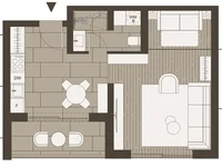 Lobby – 2.35 m² Bathroom – 4.34 m² Kitchen / Dining area – 9.78 m² Living room / Bedroom – 19.87 m² Terrace – 5.13 m²