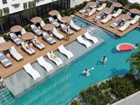 The building has 10 floors, while the apartment is on the 7th floor. This project will include an outdoor pool, spa center and a gym. The building is connected by an asphalt road to the main road. This project will be finished in 2027.
