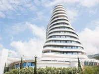 Das Gebäude verfügt über 14 Etagen, während die Wohnung im 1. Stock ist. Es bietet hervorragende Annehmlichkeiten, darunter einen Innen- und Außenpool, drei verschiedene Saunen (Russisch, Finnisch und Schwedisch), einen Fitnessraum, ein Spa-Center, ein Restaurant und ist Teil eines luxuriösen 5-Sterne-Hotels. Das Gebäude verfügt über einen Empfangsbereich für Mieter und Gästemanagement. Es ist über eine Asphaltstraße an die Hauptstraße angeschlossen. Es besteht die Möglichkeit, einen Garagenplatz für 20 000e zu kaufen.