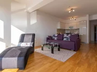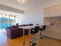 Luxus Zwei-Zimmer-Wohnung zum Verkauf in der renommierten Harmonija-Komplex, ideal sowohl zum Wohnen als auch als Mietinvestition. Die Wohnung befindet sich auf einem hohen Stock und bietet einen spektakulären, unverbauten Meerblick, der Ihren Atem weg nimmt.