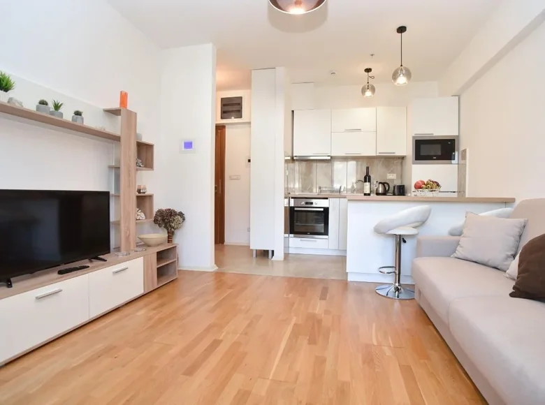 Die Wohnung befindet sich im 7. Stock eines modernen Wohnhauses und hat eine Gesamtfläche von 44 m2. Es ist östlich gerichtet, bietet reichlich natürliches Licht den ganzen Tag. Von der Terrasse aus gibt es einen spektakulären Panoramablick auf den Strand Bečići, Pržno, Miločer und Sveti Stefan, die dieses Anwesen wirklich außergewöhnlich macht.