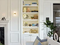 Inspiriert durch zeitloses englisches klassisches Design, wird die Innenpalette durch weiche neutrale Töne, raffinierte königliche blaue Akzente und sorgfältig kuratierte Kunst definiert. Exklusive Holzwandverkleidung, handgefertigter Marmor, außergewöhnliche Deckenhöhen, schwarzes Nussbaum Heringbone Parkettboden, unterstrich ein Gefühl von unterschätzten Luxus in der gesamten Residenz.