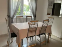 This spacious apartment in Petrovac with an area of 83 square meters plus a terrace includes a spacious separate living room (can be converted into a separate third bedroom), a separate room with a kitchen and a dining area (you can rearrange the sofa and use it as a living room), two separate bedrooms (one of the bedrooms has access to a terrace overlooking sea) and a bathroom with a shower. Each room has air conditioning. The apartment occupies the entire floor of a small building. The apartment has its own separate entrance.