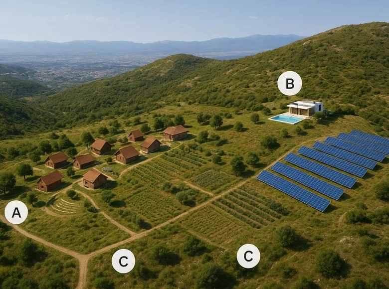vast estate of 97,000 m² in Gornji Bandići, just 15 km from the center of Podgorica.This is a rare opportunity to purchase a large landholding in Montenegro with exceptional potential for development, agriculture or private use. The property enjoys a peaceful natural setting with a panoramic view over Podgorica and the surrounding landscape, combining privacy and easy access to the city. 📐 Property details: Location: Gornji Bandići, Podgorica, Montenegro Total land area: 97,000 m² Access: direct approach via newly paved road Utilities: city water supply and electricity on the property Existing structure: large older house (can be renovated, reconstructed or redesigned according to your needs) 🌿 Key advantages: Huge land area – ideal for medium or large-scale projects Panoramic views over Podgorica and the hills around Quiet, natural environment, yet only 15 km from the capital Existing house provides a starting point for renovation or a base during development Ready infrastructure: road access, water and electricity already available 💡 Potential uses:This estate offers endless possibilities, such as: Private family estate or rural residence with extensive grounds Eco-farm / organic agriculture / orchard / vineyard Tourist facilities – holiday cottages, bungalows, glamping Ethno-village or rural tourism concept Recreational and sports center (riding club, adventure park, retreat center) Self-sustaining lifestyle project close to the city Solar-energy or other green projects (subject to permits) Thanks to its size, configuration and infrastructure, this land is highly attractive both for investors looking for large land for sale in Montenegro, and for individuals or families seeking a peaceful, self-sufficient life near Podgorica. 💶 Price: € 3