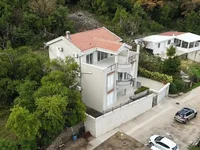 Das Haus hat eine Gesamt-Innenfläche von 330 m2 und befindet sich auf einem Grundstück von 670 m2. Das Layout umfasst Flure, zwei Wohnzimmer, drei Schlafzimmer, drei Badezimmer und drei Terrassen. Große Terrassen und erhöhte Positionierung bieten einen Panoramablick auf das Meer und die umliegenden Berge der Bucht von Kotor.
