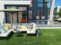 Die Villen befinden sich auf einem nützlichen Grundstück und verfügen über separate Parkplätze, private Pools und große Terrassen mit Aussicht für jedes Haus. Am Eingang der Villa befinden sich eine offene Küche, ein Gästezimmer, ein Badezimmer, eine Toilette und ein Wohnzimmer. Die geräumigen Villen, die über 2 Schlafzimmer mit eigenem Bad und einen Balkon im Obergeschoss verfügen, wurden beim Bau mit hochwertigen Materialien gestaltet. In den Villen, die über viele komfortsteigernde Merkmale wie Internet-Infrastruktur, Klimaanlagen-Infrastruktur, Satelliten- und Gegensprechanlagen-Infrastruktur verfügen, wurden für die Nassböden wärme- und feuchtigkeitsbeständige Keramik bevorzugt. Die Villen, die kurz- und langfristig ein hohes Potenzial für Mieteinnahmen in Fremdwährung haben, verfügen über geeignete Zahlungsmöglichkeiten. Die sich schnell entwickelnde Region umfasst einen Yachthafen, neue Straßenprojekte, die den Transport erleichtern, verschiedene Schulen und exklusive Hotelprojekte.