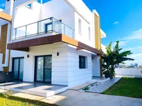 Die zweistöckige Villa wird komplett möbliert zum Verkauf angeboten. Im Erdgeschoss befinden sich ein geräumiges und helles Wohnzimmer mit einem gemütlichen Kamin für Winterabende, eine moderne Küche und ein Gäste-WC. Das Wohnzimmer öffnet sich direkt zum privaten Garten. Im Obergeschoss befinden sich drei Schlafzimmer. Das Hauptschlafzimmer verfügt über ein eigenes Bad und einen begehbaren Kleiderschrank. Die beiden anderen Schlafzimmer teilen sich ein Badezimmer. Darüber hinaus verfügt die Villa über eine private Dachterrasse im obersten Stockwerk, auf der Sie die Meeresbrise genießen können. Dieser Raum ist ideal zum Entspannen und zum Empfang von Gästen.