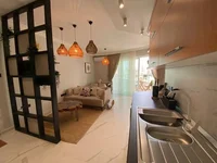 Ein Schlafzimmer Wohnung (1+1) von 60 m2 mit einer geräumigen Terrasse und einem kleinen Garten, voll möbliert und mit modernen Geräten ausgestattet.