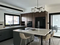 Geräumiger Wohnraum, Veredelungsmaterialien und Sanitäranlagen von höchster Qualität. Panoramaverglasung mit Doppelverglasung. Eingebaute hochwertige Küche. Einbauschränke