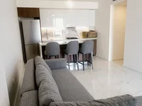 Das Apartment verfügt über Möbel und eine voll ausgestattete Küche. Das praktische Layout mit zwei Bädern macht es ideal für Familienleben und Gastgäste.