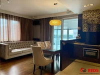 3-Zimmer-Wohnung mit Blick auf das Panorama der Stadt. Das Hotel liegt im 8. Stock eines 11-stöckigen Backsteingebäudes mit einem Aufzug. Finishing aus natürlichen Materialien höchster Qualität. Hochwertige Geräte, eingebaute Loggia mit zusätzlichen Schränken. Das Wohnzimmer ist klimatisiert Mitsubishi und Focal Audiosystem.