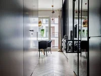 Es gibt viele Ecken und Plätze in der Wohnung zu speichern. Kompakt, komfortabel und perfekt für ein einzelnes oder ein Paar. Auf dem Boden, ein exklusives Holzparkett - französisches Heringbone in einem einzigartigen, hellen Ton. Innentüren in der oberen Standard-Höhe zur Bestellung hergestellt.
