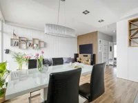 Das Wohnzimmer verfügt über große Panoramafenster. Es gibt Marmor in der Küche und hochwertige Paneele auf dem Boden. Die Wohnung verfügt über Gasheizung. Es hat einen eigenen Kesselraum.