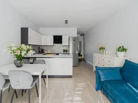 Zu verkaufen ist eine gemütliche Wohnung in Stare Bielany auf Kasprowicza Straße, mit einer Fläche von 55,9 m2 und einer Terrasse von 17 m2. Die Wohnung verfügt über ein helles Wohnzimmer mit einer offenen Küche und Zugang zur Terrasse, zwei Schlafzimmer, ein Badezimmer und einen Parkplatz in der Garage. Es befindet sich im Erdgeschoss. Der Zustand ist perfekt, die Wohnung wurde 2023 renoviert. Tolle Lage - nur eine Minute zu Fuß von der U-Bahn-Station Młociny, die bequeme Verbindungen zu anderen Teilen von Warschau bietet. Die Anlage verfügt über einen Spielplatz und Kindergärten, Schulen, Geschäfte, Restaurants und Cafés sind in der Nähe. Die Terrasse ist nach Süden ausgerichtet, so dass es sonnig und ruhig, mit guter Isolierung von benachbarten Gebäuden. Die Wohnung ist komplett möbliert und mit High-End-Geräten von Samsung und Bosch ausgestattet. Das Badezimmer verfügt über eine Badewanne und der Flur hat Einbauschränke. Die Gegend ist von Parks und aktiven Erholungsgebieten umgeben, nur 2 Gehminuten von Lidl und 5 Minuten von Galerii Młociny entfernt.