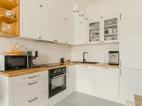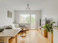 Das Haus wird durch den Verband der Eigentümer und der Verwaltungsgesellschaft verwaltet. Das Layout umfasst ein geräumiges Wohnzimmer mit einer Küchenzeile mit Haushaltsgeräten und einen Ausgang zum Balkon, zwei separate Schlafzimmer mit Abstellraum, ein Badezimmer mit einer begehbaren Dusche und einer Glastrennwand, ein separates WC mit Waschbecken und einen Flur mit zusätzlichem Abstellraum.