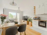 Die Wohnung hat maßgeschneiderte Holzmöbel, Parkettböden, und erfordert die Malerei der Wände. Der Komplex, in dem sich die Wohnung befindet, bietet verschiedene Annehmlichkeiten für die Bewohner, darunter Geschäfte, Cafés, Restaurants, Spielplätze, Erholungsgebiete, Sportplätze und vieles mehr. Der nahe gelegene Bahnhof SKM Żerań und die U-Bahn-Linie (Bródno und Kondratowicza) machen die Lage bequem zum Wohnen.