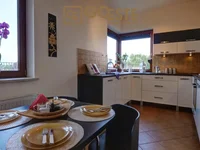 Dieses wunderschön gestaltete Haus bietet ideale Bedingungen für eine Familie, die Komfort und Nähe zur Natur sucht. Im Erdgeschoss befindet sich ein geräumiges Wohnzimmer mit einem Essbereich von 30 m2, aus dem ein Blick auf einen sorgfältig entwickelten Garten durch große Fenster erweitert wird. Das Wohnzimmer verfügt über einen Holzofen, der dem Innenraum nicht nur einen warmen Charakter verleiht, sondern auch eine zusätzliche Wärmequelle bietet, die im ganzen Haus verteilt ist.