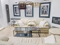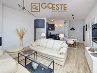 Das Wohnzimmer ist in einen Essbereich und einen Sitzbereich unterteilt, der zu einem geräumigen Balkon führt. Auch im Wohnzimmer gibt es ein 2m x 4m Dachfenster mit zusätzlichem Tageslicht. Zusätzliche Attraktion der Wohnung ist auch im Wohnzimmer Kamin angebracht, die eine einzigartige Atmosphäre in Herbst-Winter Abende bildet.