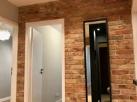 An den Wänden entsteht ein alter roter Abbruchstein, der in Kombination mit Möbeln ein erstaunliches Klima schafft.