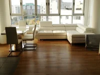 Wohnung komplett ausgestattet und möbliert. In den Küchengeräten (Kühlschrank, Geschirrspüler, Backofen, elektrische Herdplatte, Mikrowelle). Badezimmer mit Dusche. Die Fenster der Wohnung überblicken drei Seiten der Welt. Ein Wintergarten mit herrlichem Blick auf das Panorama von Warschau.