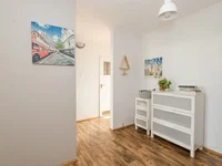 Großer Balkon, separates Bad und WC, Flur mit Abstellraum.