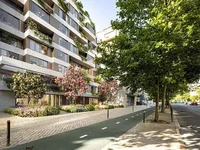 Die Gemeinschaftsbereiche setzen die Erfahrung mit den Materialien im Inneren der Wohnungen fort und heben die Lobby, einen großen gemeinsamen städtischen Garten, einen Raum für ein Fitnessstudio, einen Parkplatz für Elektrofahrräder mit Lademöglichkeit und einen Meditationsraum hervor.
