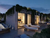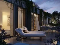 Die Wohnungen in der obersten Etage verfügen über private Außenterrassen mit Swimmingpool und Essbereich.