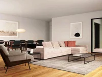 Diese Drei-Zimmer-Wohnung besteht aus einem Wohnzimmer, Küche, zwei Balkone, WC, Wäscherei, drei Bäder und zwei Schlafzimmer, ein Schlafzimmer und ein Ankleidezimmer.