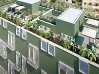Der Komplex besteht aus 16 Wohnungen mit 2 und 3 Schlafzimmern, verteilt über 2 Gebäude, mit einer Garage, einem Aufzug und einer gemeinsamen Terrasse zur Erholung, mit Blumenbeete eingerichtet.