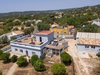 Im Obergeschoss befindet sich ein großes Schlafzimmer mit Zugang zu einem Balkon und einer Terrasse mit herrlichem Blick auf die Landschaft und die Berge der Algarve.